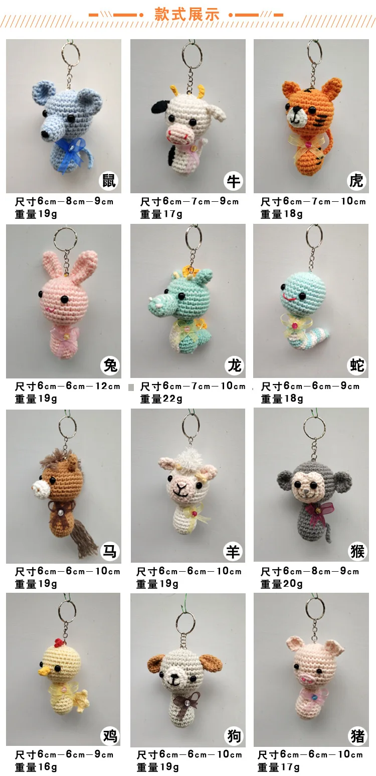 6cm Cute Animal Crochet Doll Key Chain Knit Toy Cute Pendant Bag Accessories Crochet Toy