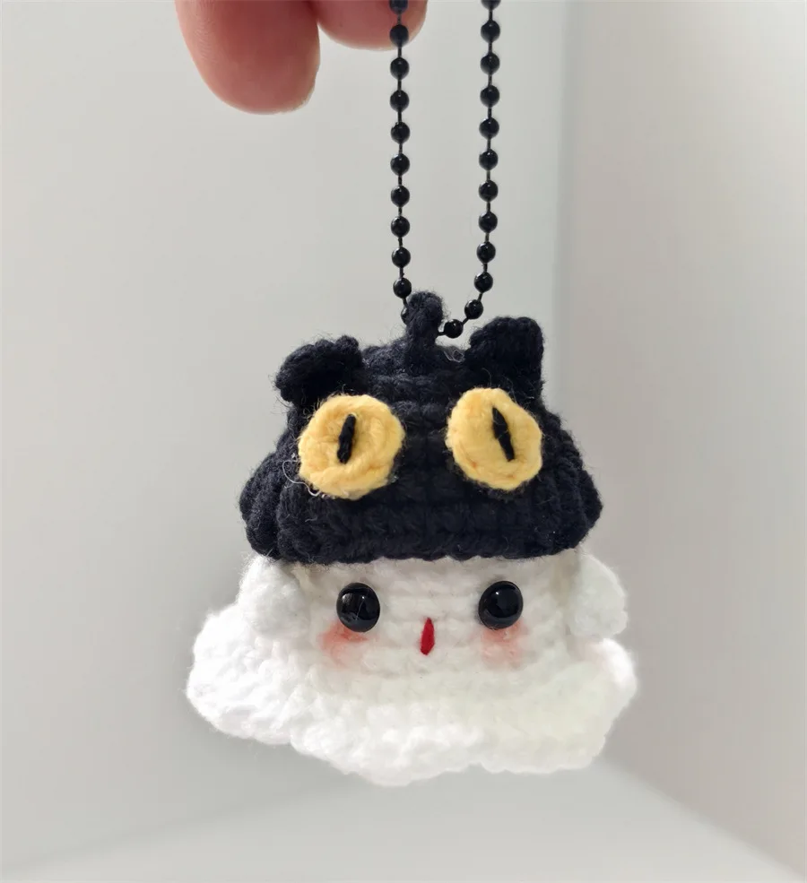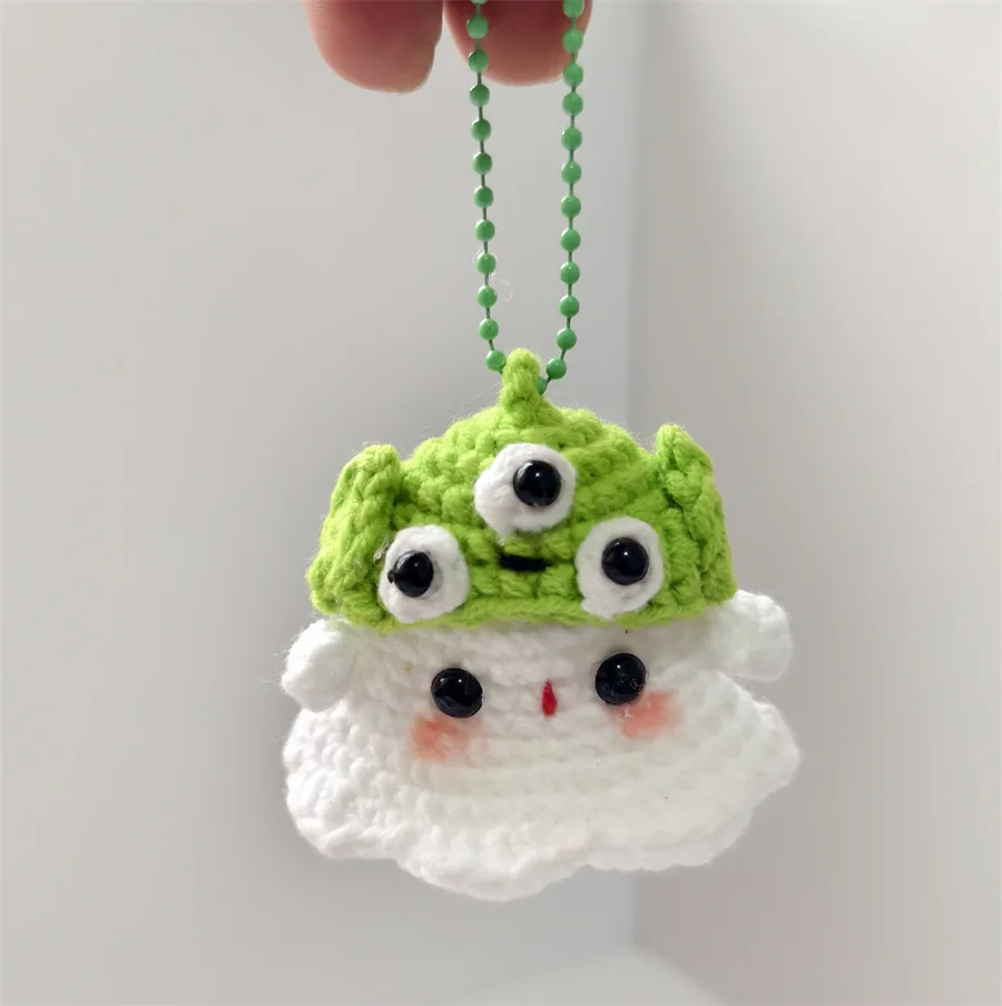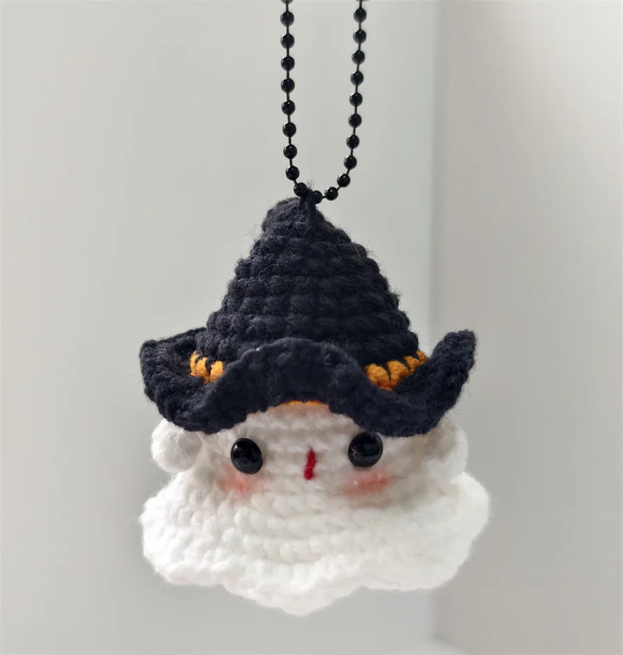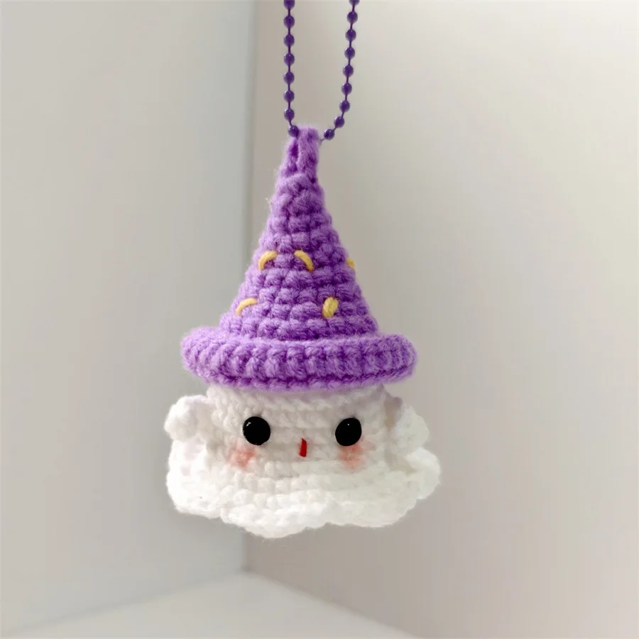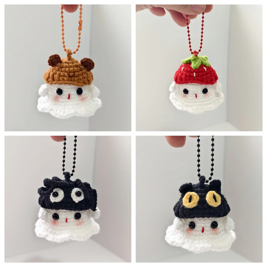 Creative Hand Knitting Ghost Keychain Pendant Halloween Home Decoration Funny Handmade Crochet Ghost Doll Ornament Gifts